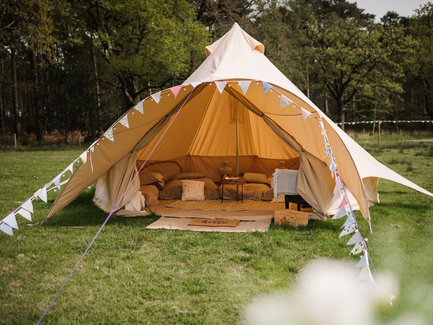 Prices based on up to 6 sharing a 5m Bell tent with zipped in groundsheet, lights inside & out and bunting too!